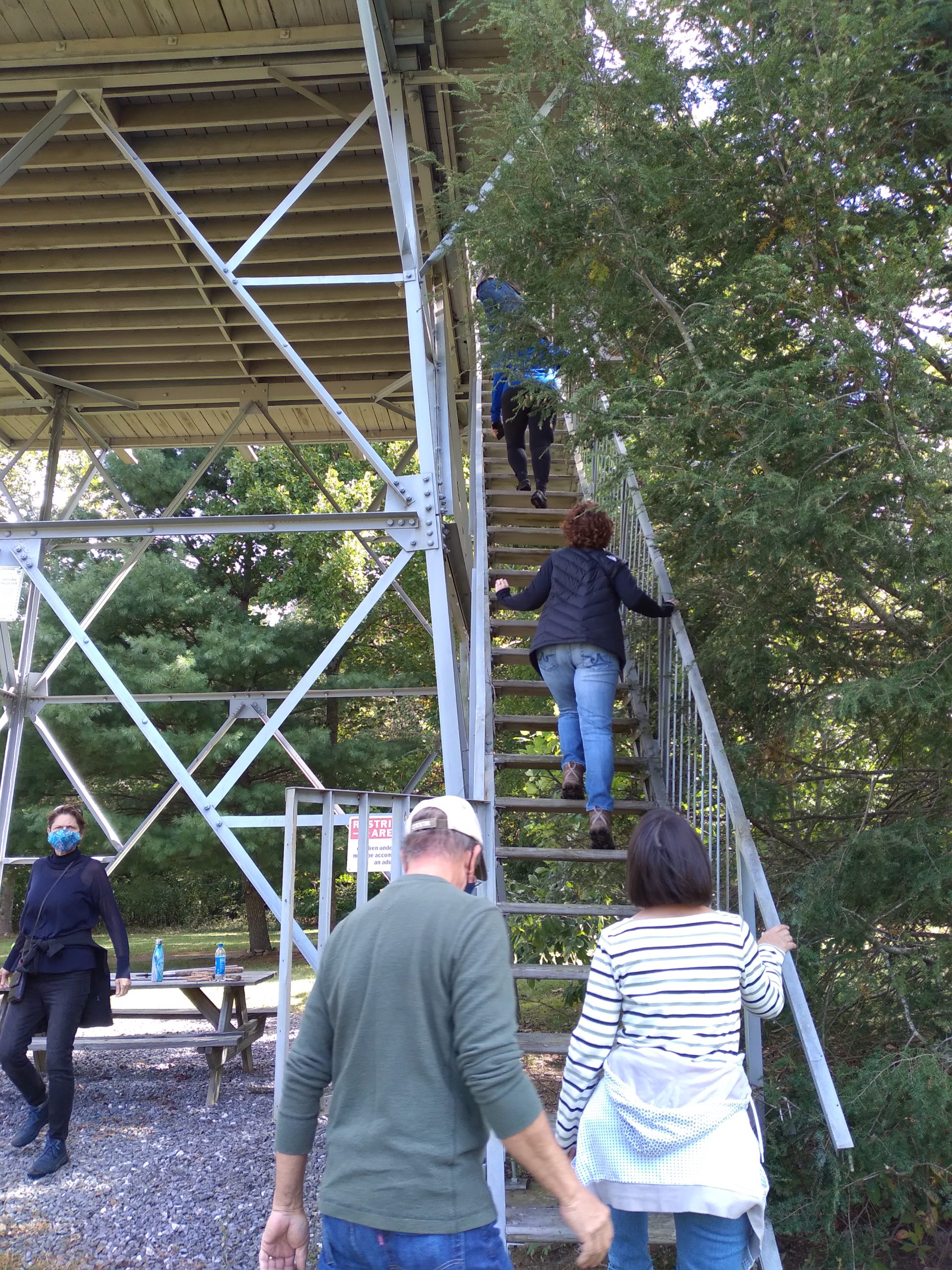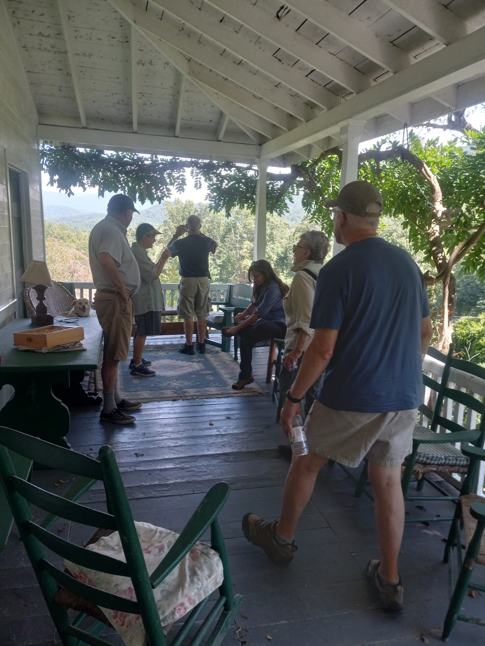 On this early-fall day, WNCHA led a tour of the Big Ivy Historical Park in Barnardsville. We climbed the restored Little Snowball Mountain lookout tower and toured restored early-1800s log cabins which once belonged to the Carson family. After a quick lunch, WNCHA public programs director Trevor Freeman also delivered an interpretive presentation to the group looking at Big Ivy in terms of Appalachian stereotypes, and exploring the competing trends of forest commons and outside land holding which are crucial to understanding this historic community. We were lucky enough to also meet the local man responsible for saving the tower and restoring it to its former glory.