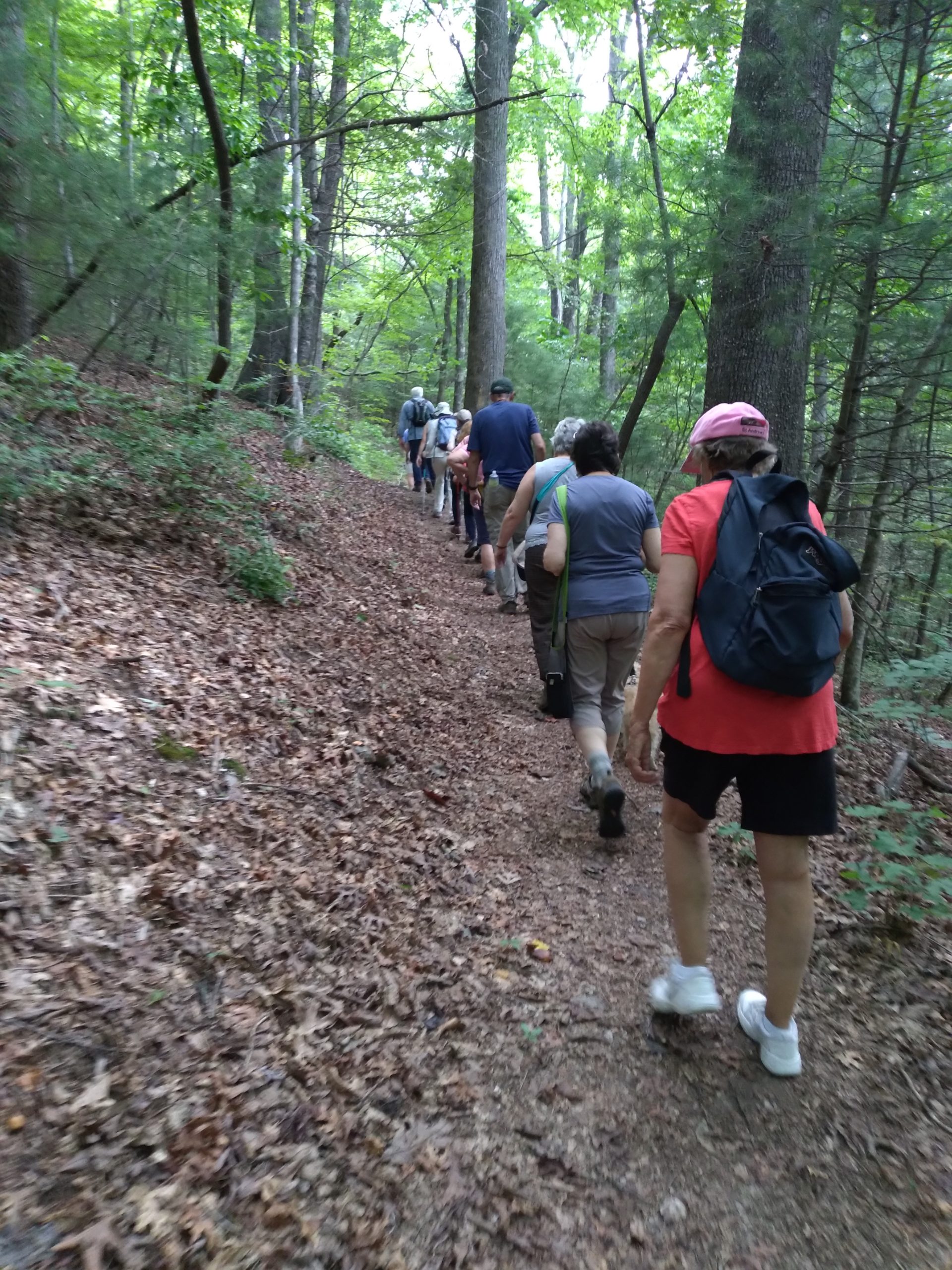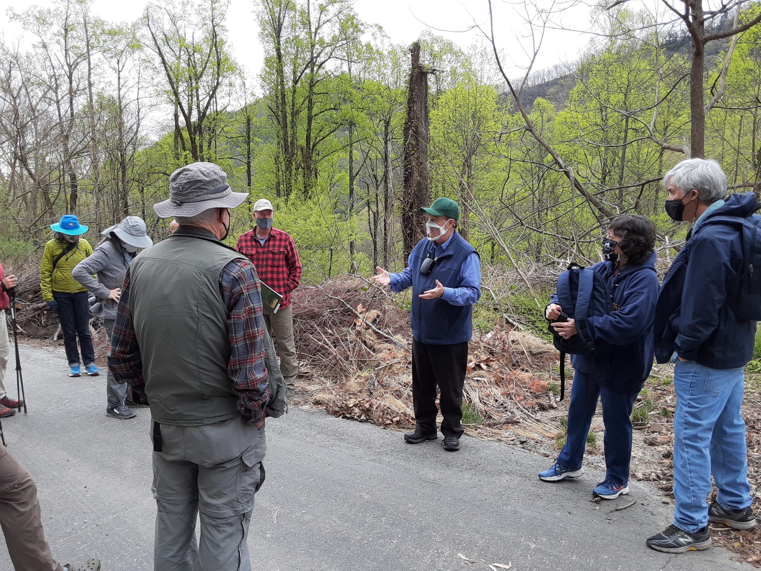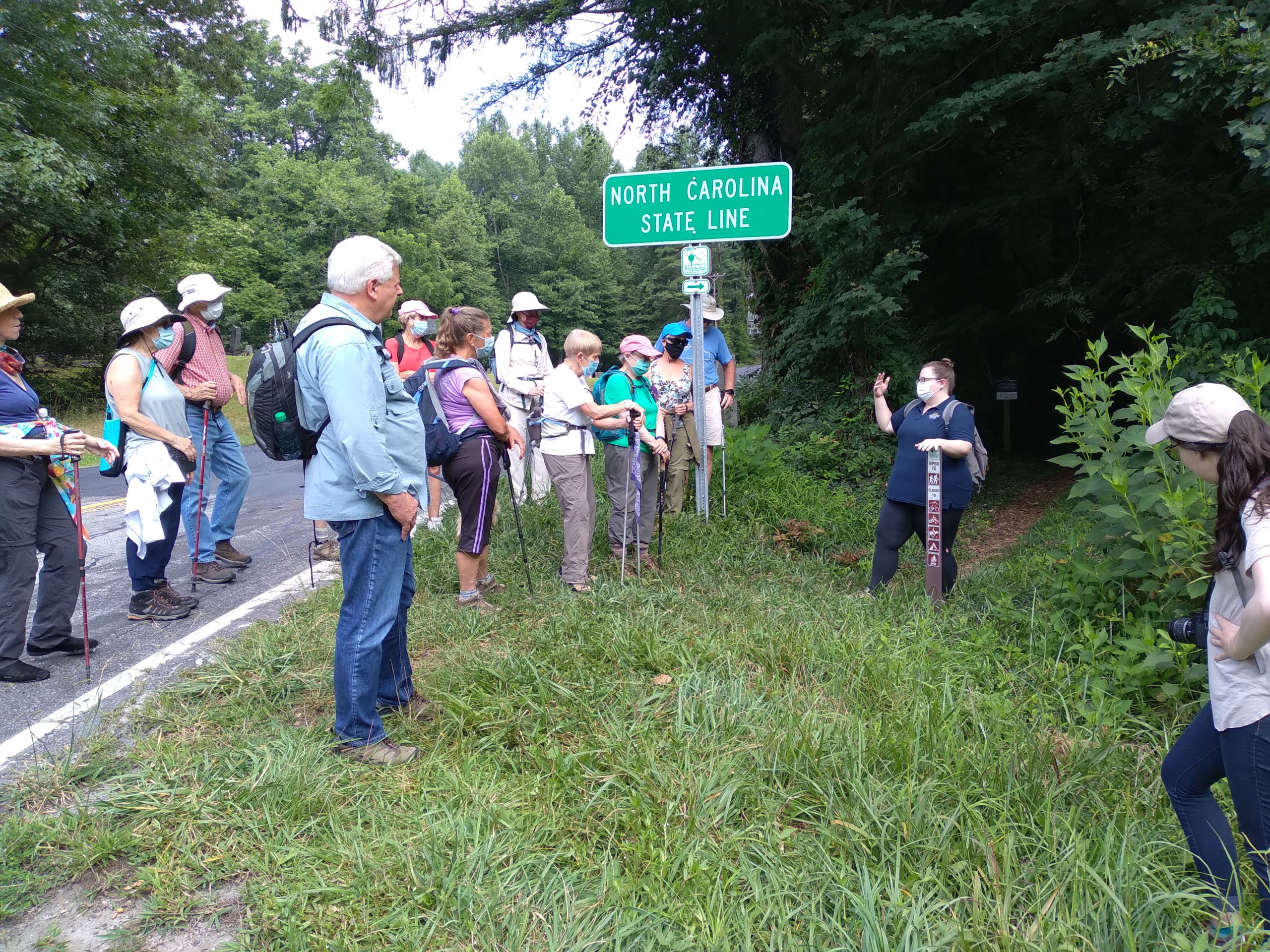 On this beautiful day, we were joined by Lauren May of the Vance Birthplace State Historic Site who interpreted the history of the pivotal Buncombe Turnpike on this 2-mile hike. We travelled along the Palmetto Trail to the NC/SC state line, where the Buncombe Turnpike began in the Saluda Gap. Trevor Freeman of WNCHA then addressed the two other famous events at this site: the 1827 Vance-Carson duel and the establishment of the Happy Land Kingdom after the Civil War. We saw plenty of flowers and mushrooms along the way.