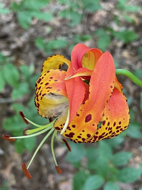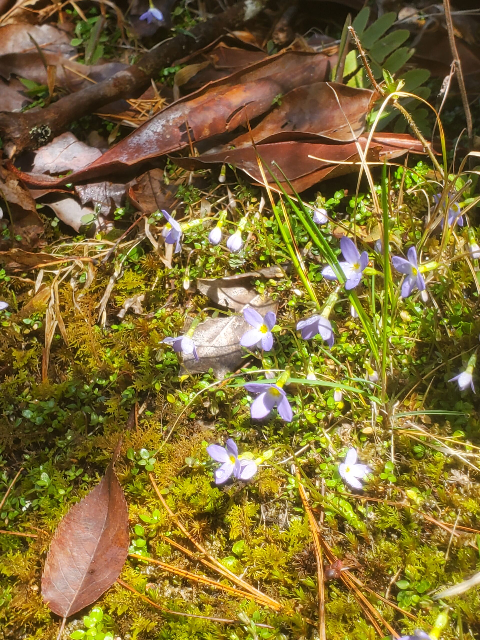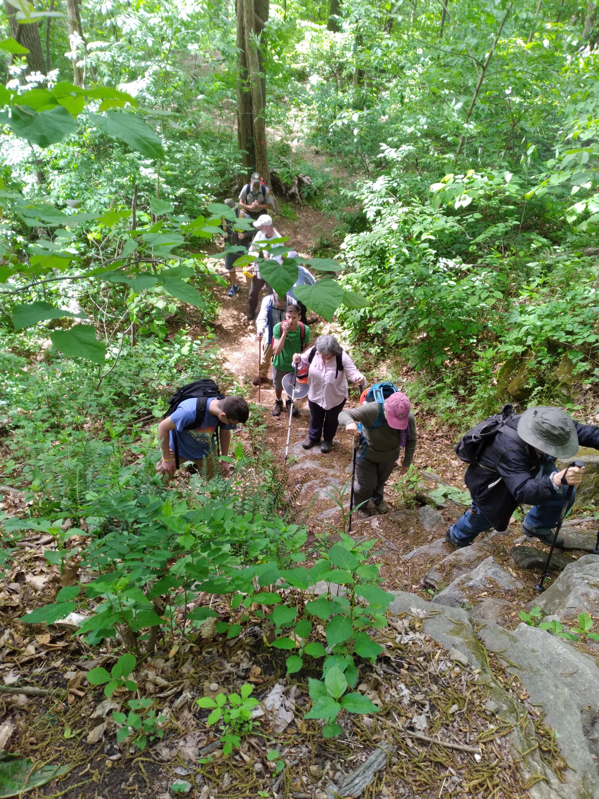 On this beautiful day, we were joined by Lauren May of the Vance Birthplace State Historic Site who interpreted the history of the pivotal Buncombe Turnpike on this 2-mile hike. We travelled along the Palmetto Trail to the NC/SC state line, where the Buncombe Turnpike began in the Saluda Gap. Trevor Freeman of WNCHA then addressed the two other famous events at this site: the 1827 Vance-Carson duel and the establishment of the Happy Land Kingdom after the Civil War. We saw plenty of flowers and mushrooms along the way.