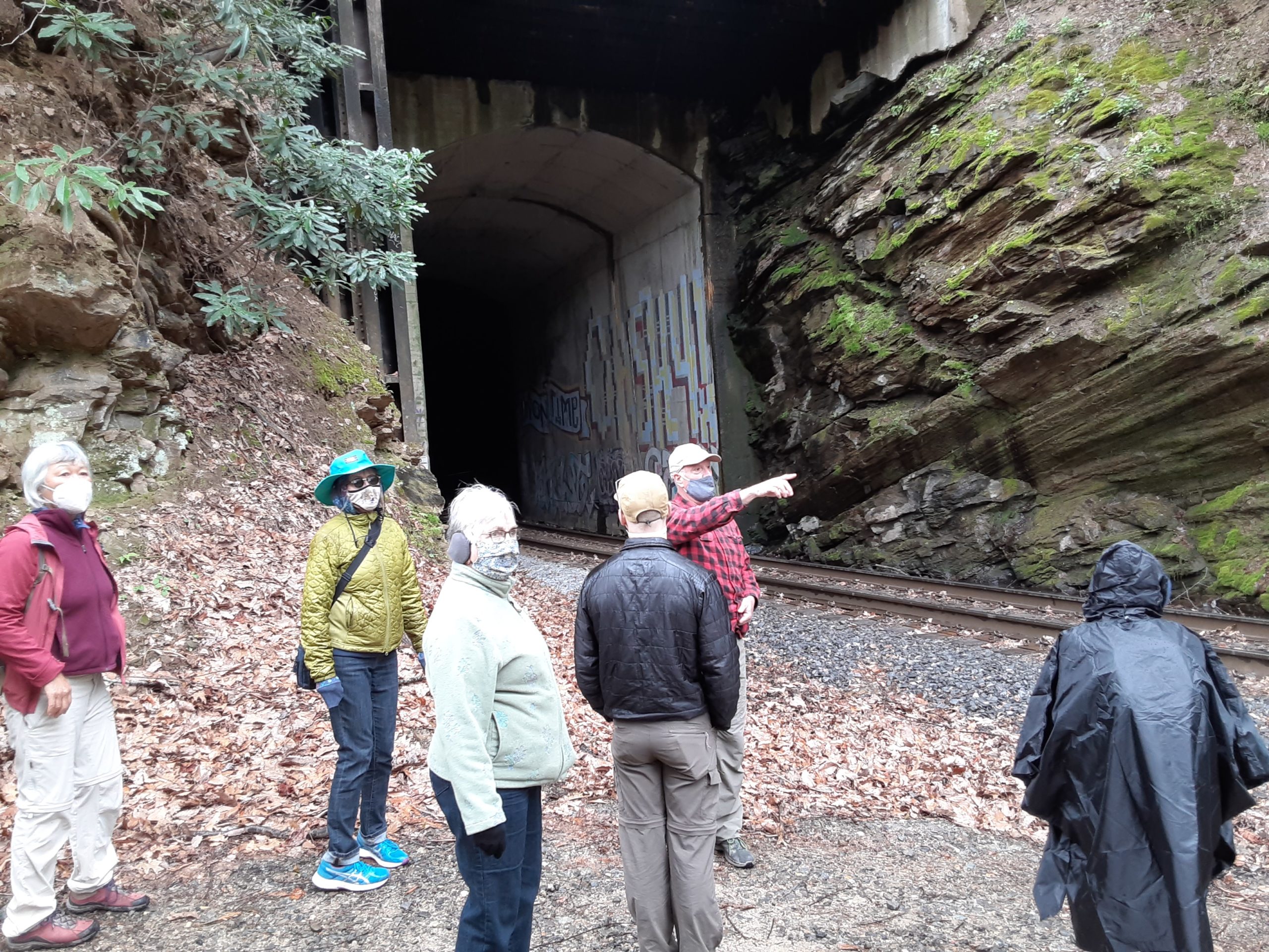In two hikes along the Point Lookout Greenway, historian Dan Pierce and Marion Mayor Steve Little interpreted the history of the Western Carolina Railroad and the incarcerated laborers who toiled to complete the winding loops leading to the Swannanoa Tunnel. Both men are part of the RAIL Memorial Project raising funds to erect a monument to those predominantly African American laborers at nearby Andrews Geyser.