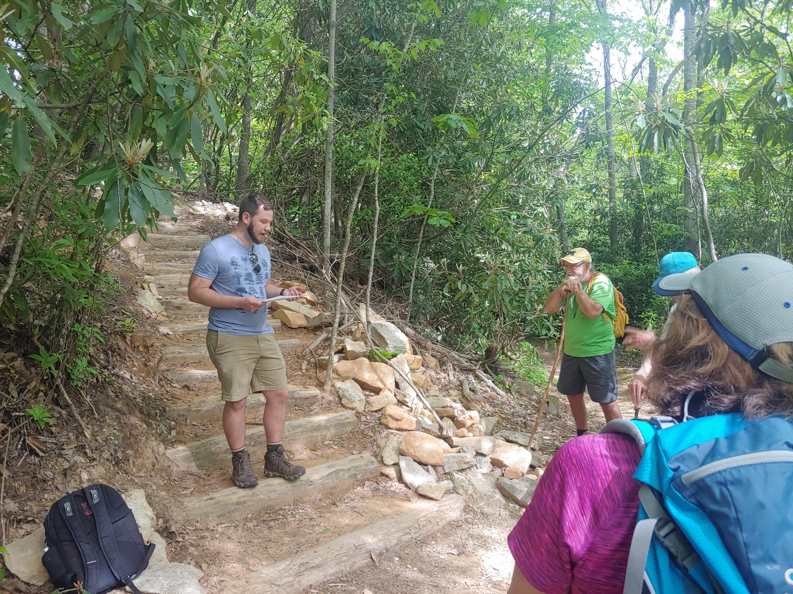 In this special hike, we partnered with Conserving Carolina, a local land trust, who allowed us to use a special section of their trails in the Hickory Nut Gorge leading up to the beautiful Blue Ridge Pastures. WNCHA Public Programs Director Trevor Freeman interpreted the natural and cultural history of this famous gorge, exploring Native Americans, early white settlers, slavery, tourism, livestock drovers, and the incarcerated laborers who constructed the winding road. The hike was strenuous, but the views were well worth it.