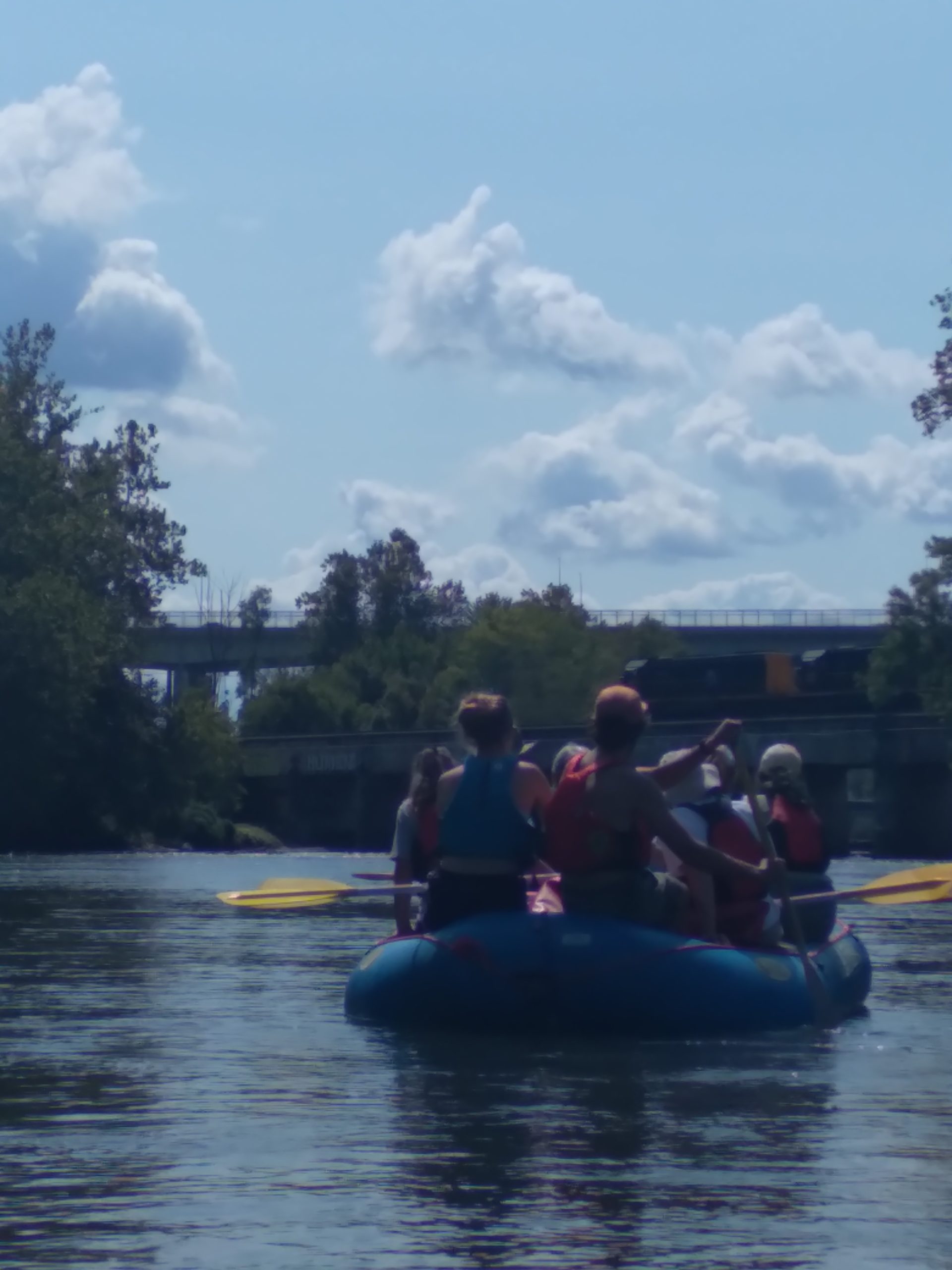 We revived our interpretive paddle trip down one of the most historic sections of the French Broad River, paddling from the mouth of the Swannanoa River to the Woodfin Dam. This 7-mile outing passed by several bridges, many of which were destroyed during the Flood of 1916. Led by WNCHA’s public programs director, the group discussed Cherokee and early settler activities along this stretch, the Mountain Lily steamboat, industrialization, floods, pollution, and activism to protect this vital river. Montreat College’s Outdoor Recreation Studies were instrumental, providing rafts, canoes, and safety/paddle guidance.