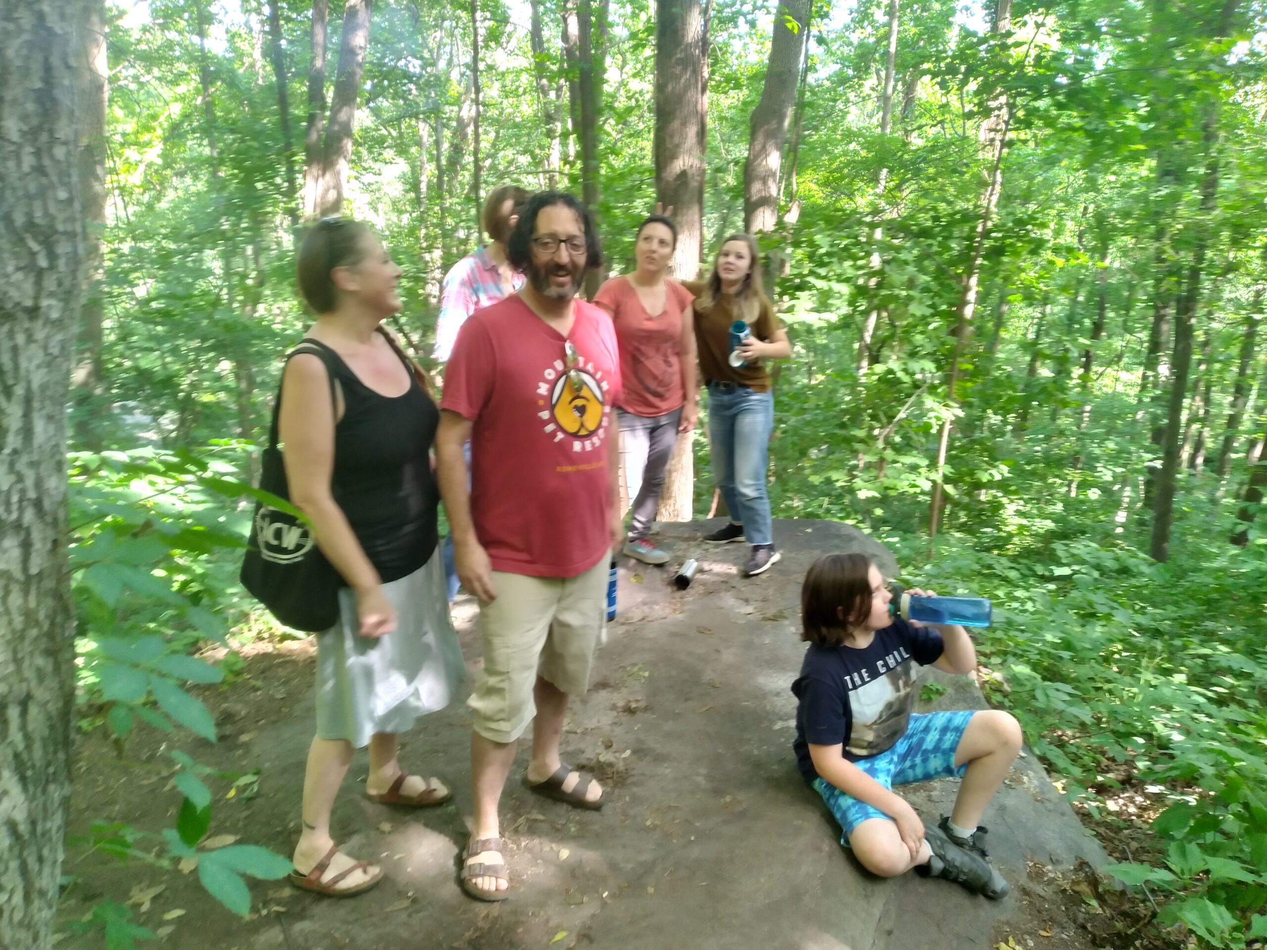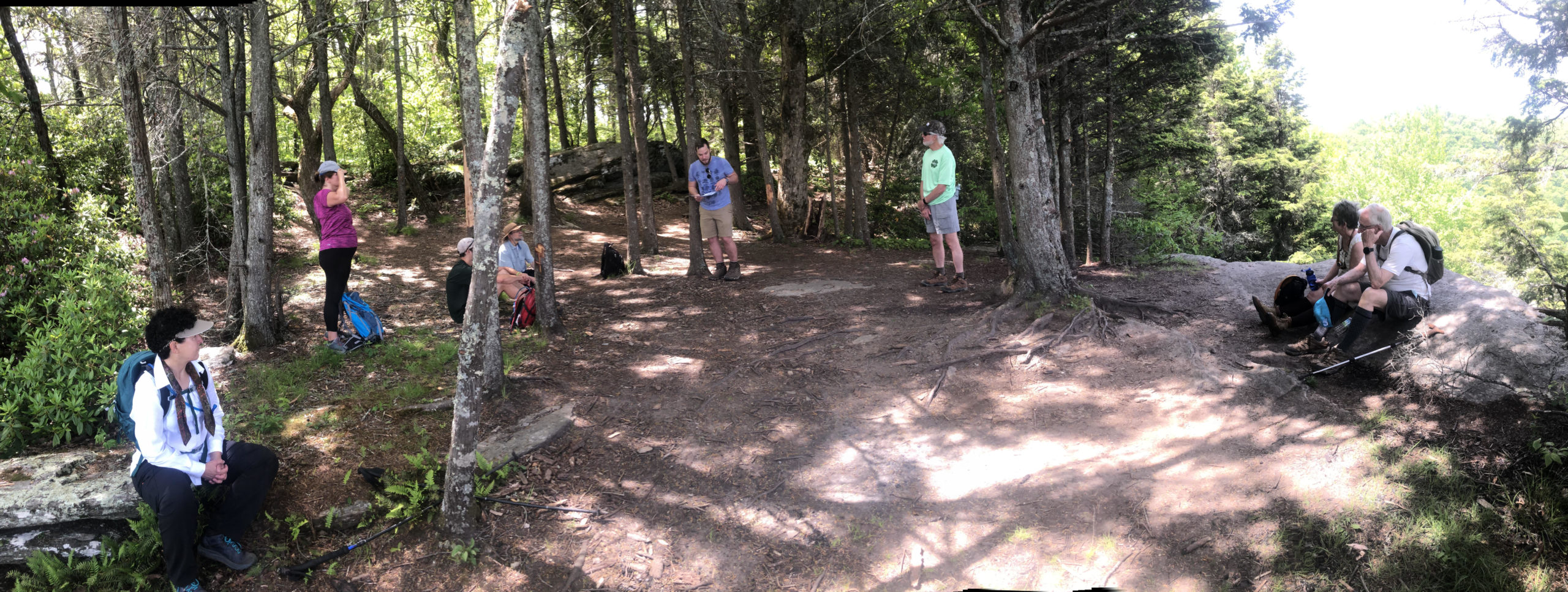 On this 1.5-mile hike, the group explored the 1874 rumblings underneath several mountains on the eastern end of the Hickory Nut Gorge. Led by our public programs director, we traced the media coverage of the event, the route of an investigating geologist, and the wild speculation, rumors, and stereotypes that emerged from what many believed was a volcano set to erupt. We were also permitted to see evidence of the geologic activity common to this part of WNC, exploring fissures and rock falls at “Rumbling” Bald Mountain. A big thanks to Chimney Rock State Park for their assistance!