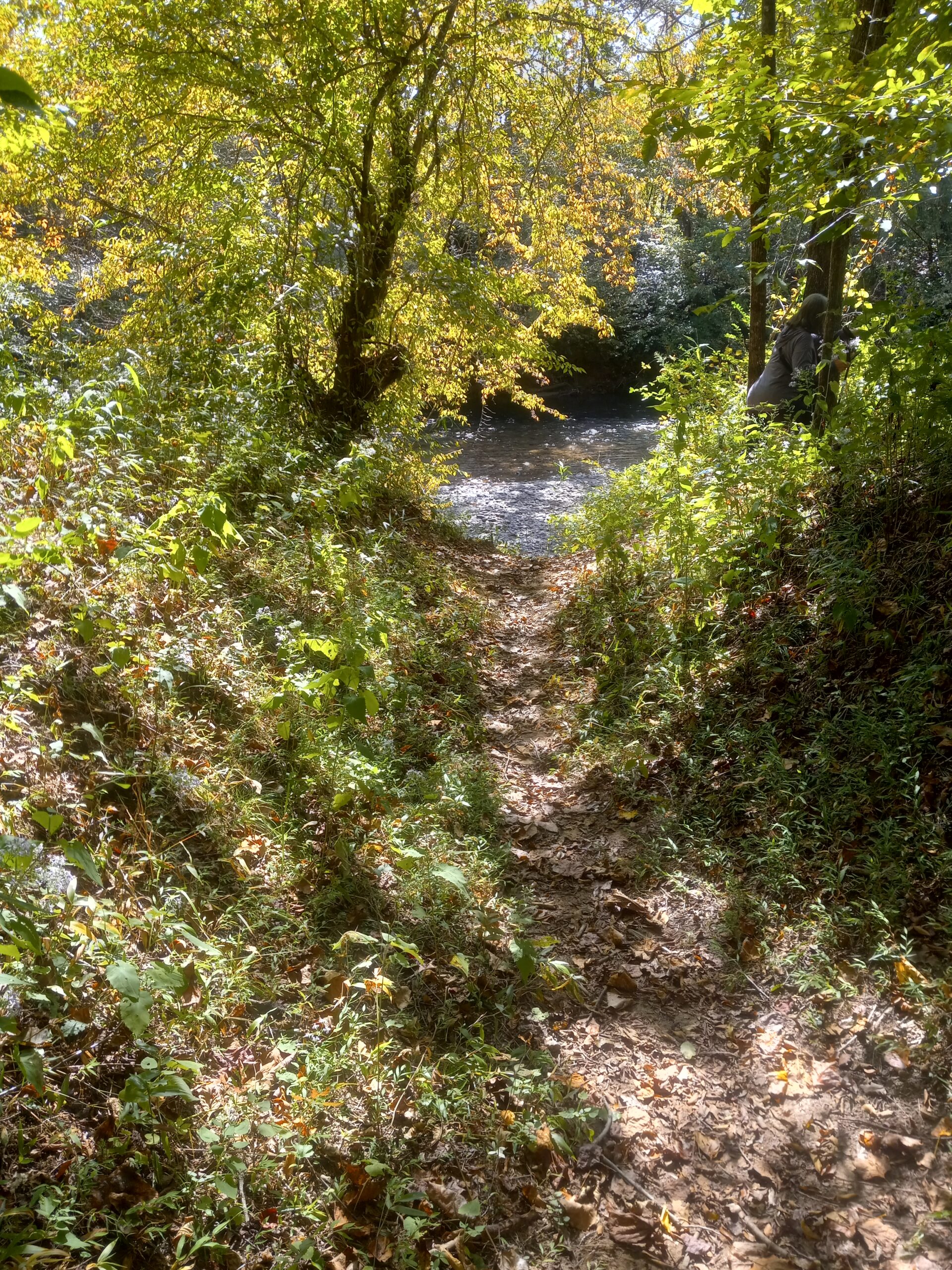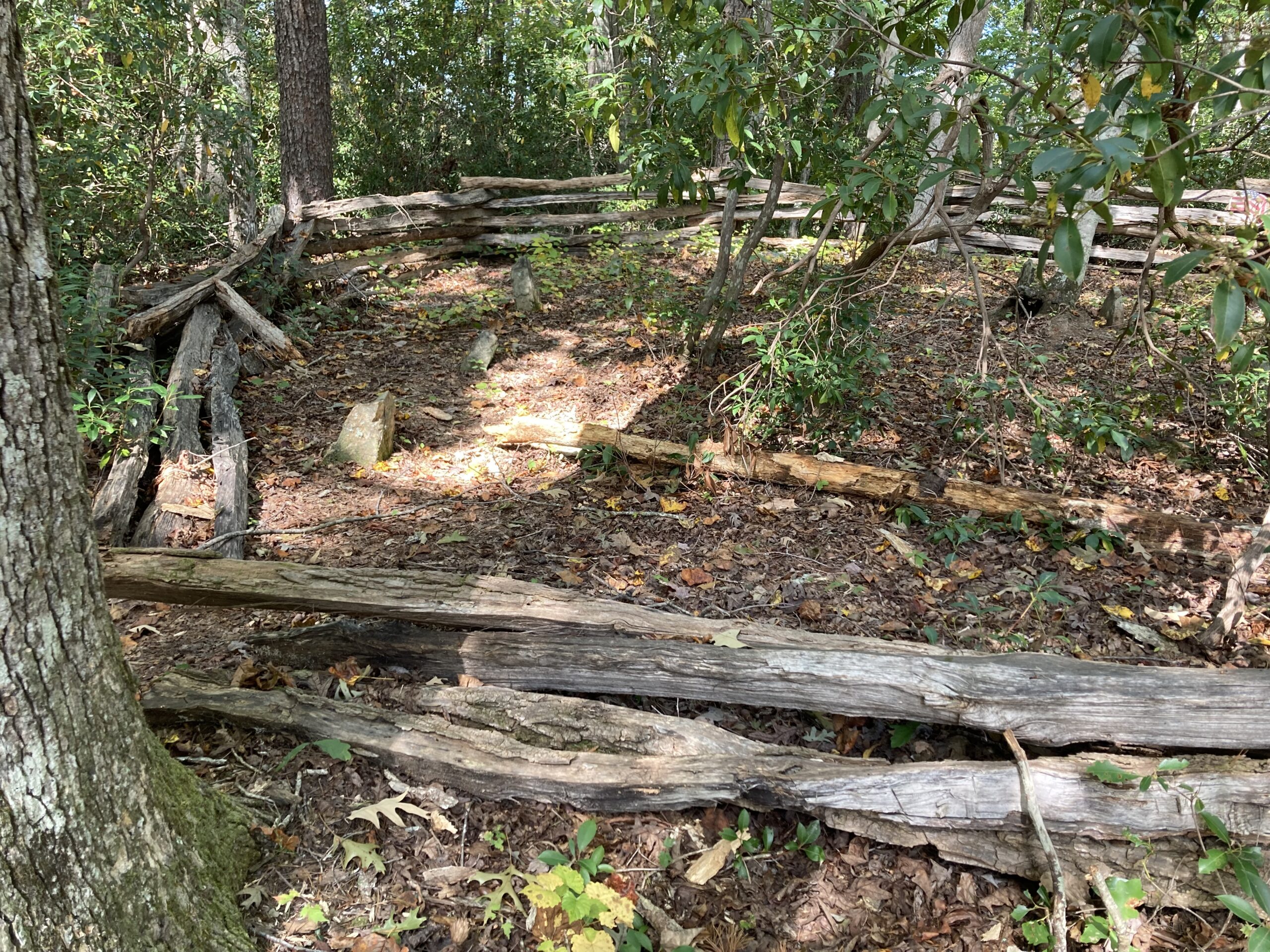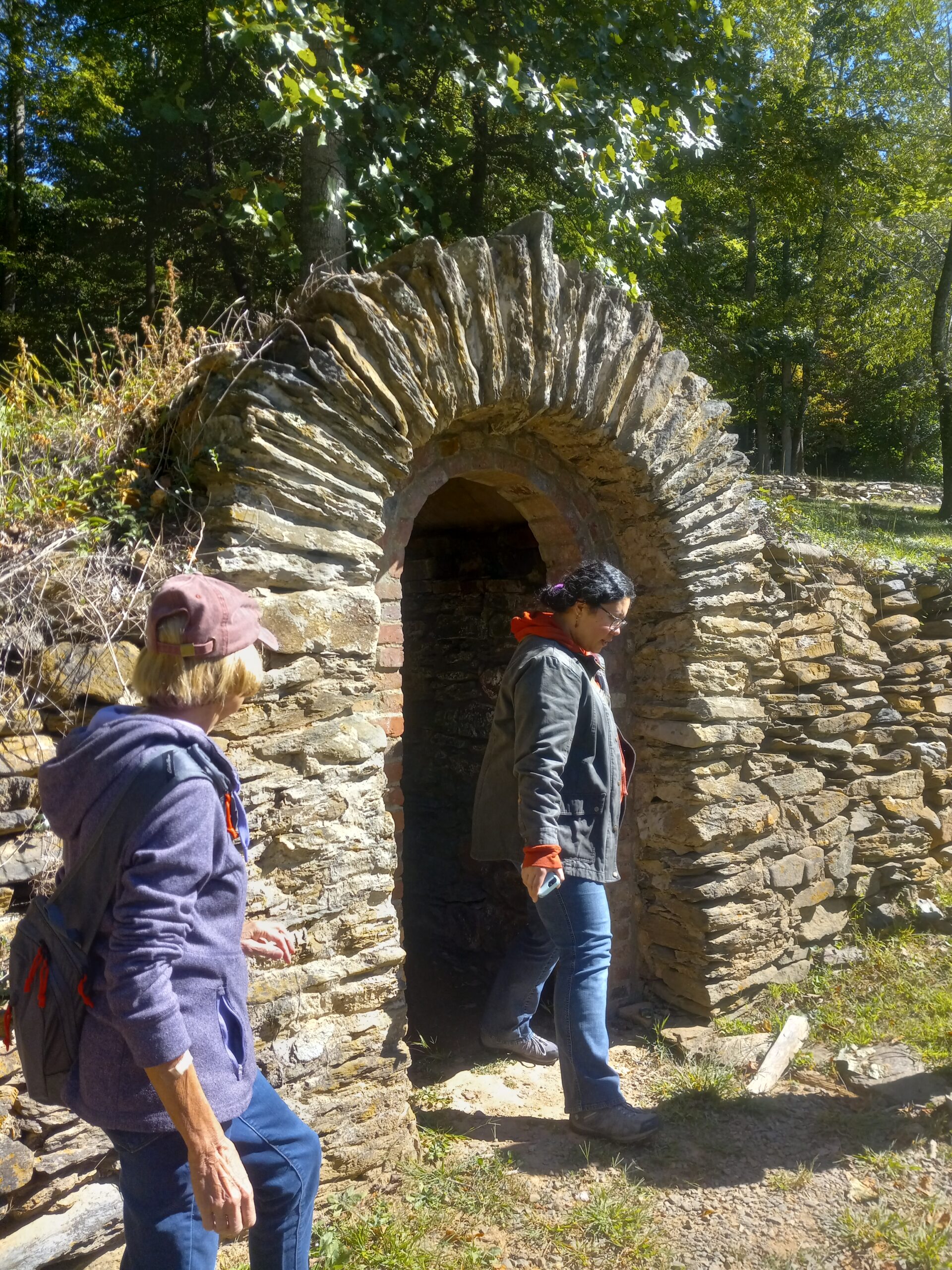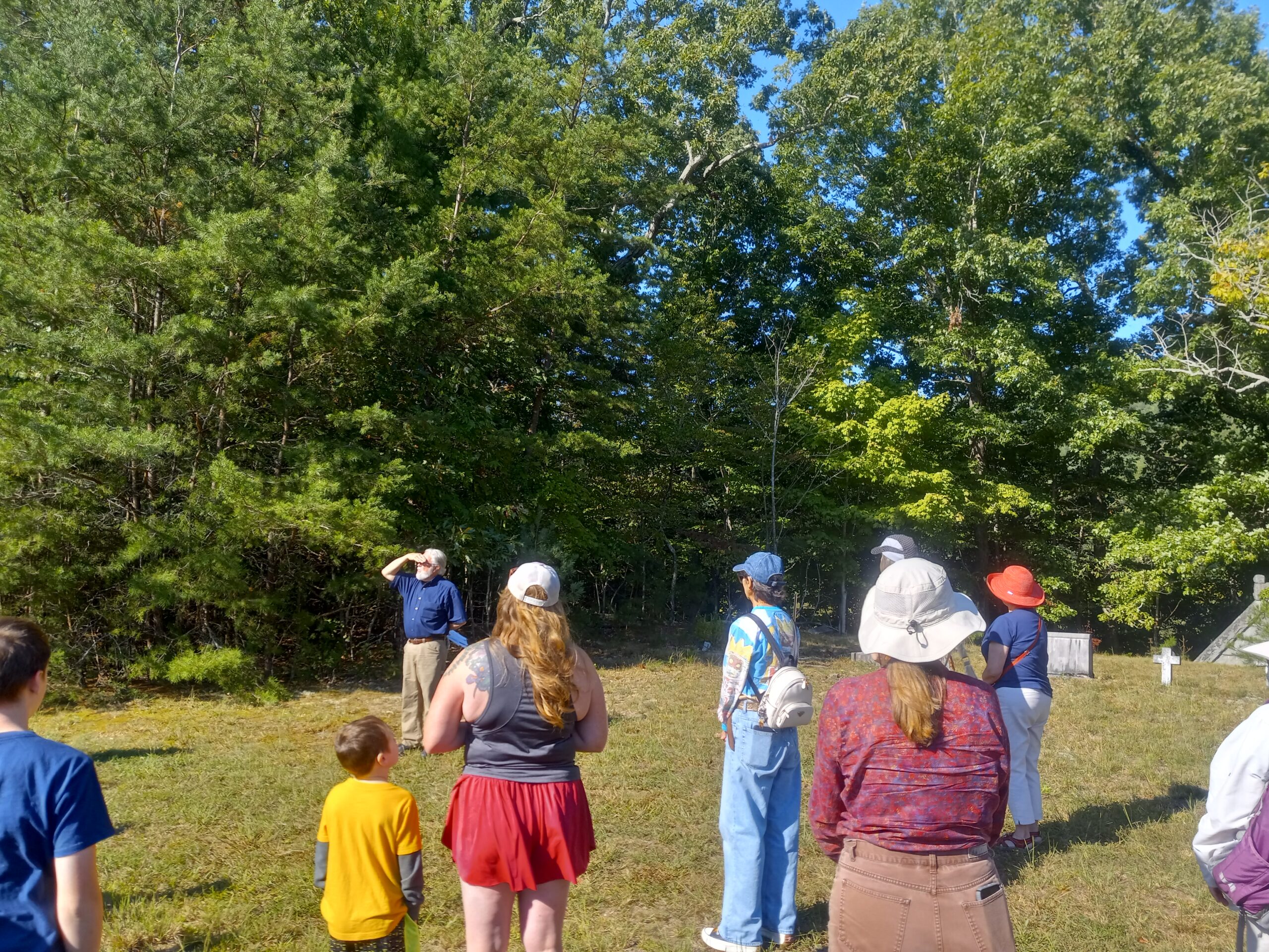 It was a beautiful fall day to hike a section of the Overmountain Victory National Historic Trail to Alexander’s Ford near the Rutherford/Polk County border. Led by our public programs director, guests learned about the 1780 Battle of Kings Mountain in the bigger context of divided loyalties in the WNC foothills and mountains during the American Revolutionary War. We paid particular attention to the stories of Loyalists (or those accused thereof) and their plight during and after the conflict. On the way out, we learned more about an adjacent cemetery, likely where unidentified enslaved people were buried, and Gray’s Chapel, named after a participant at Kings Mountain.