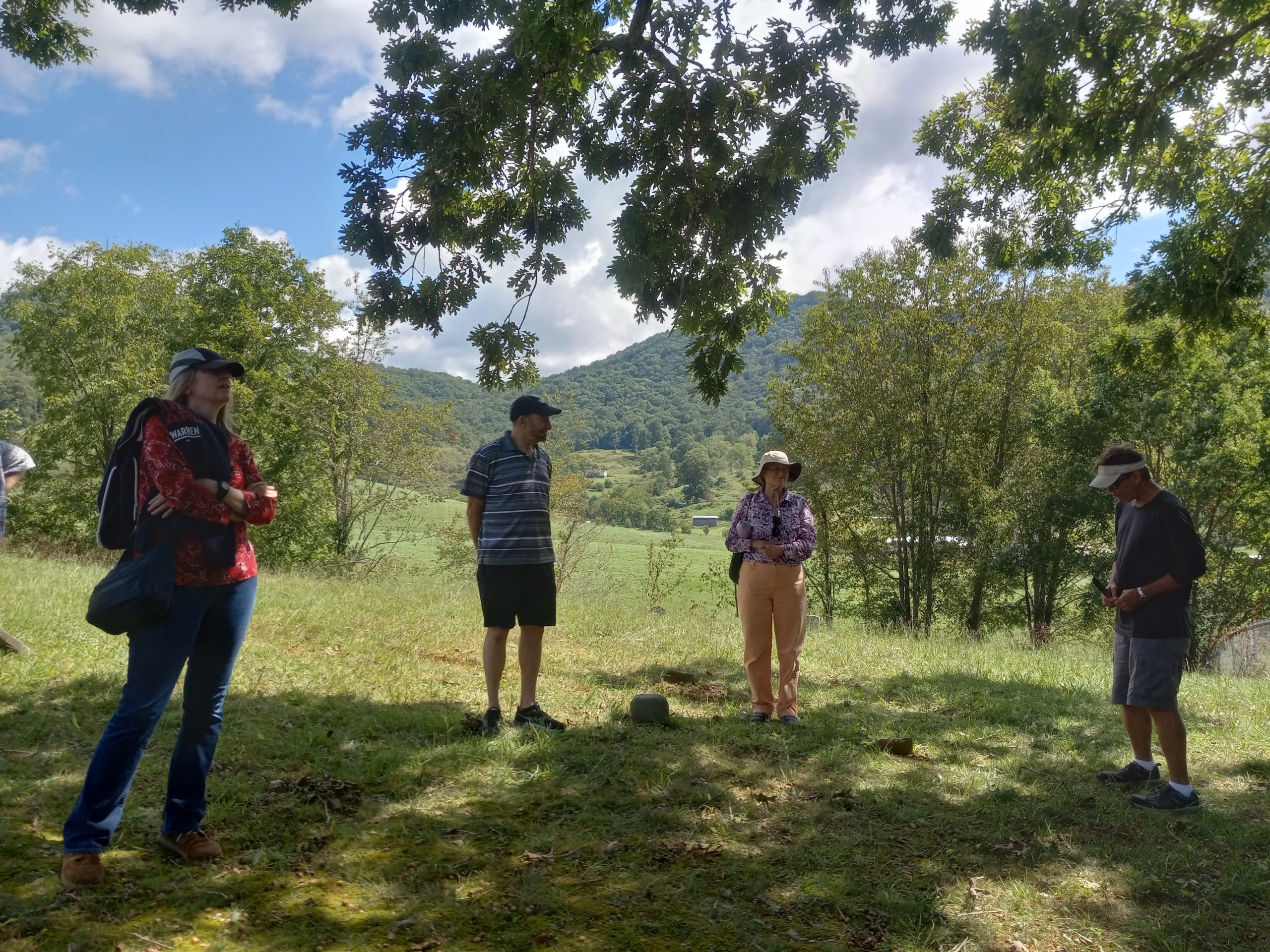 Our Hikes With a Historian: Cemetery Series continued Wednesday, Sep 21 with a tour of four cemeteries in Hot Springs, NC. We were joined by Taylor Barnhill of the Appalachian Barn Alliance and by two local residents who shared stories and great insights about the places we visited. We learned about the history of Hot Springs through the burial sites we toured, including the confinement of 2,100 German internees during the First World War and the burial/reinterment of 26 in the Odd Fellows Cemetery. We greatly appreciate the special access to several of these interesting sites!