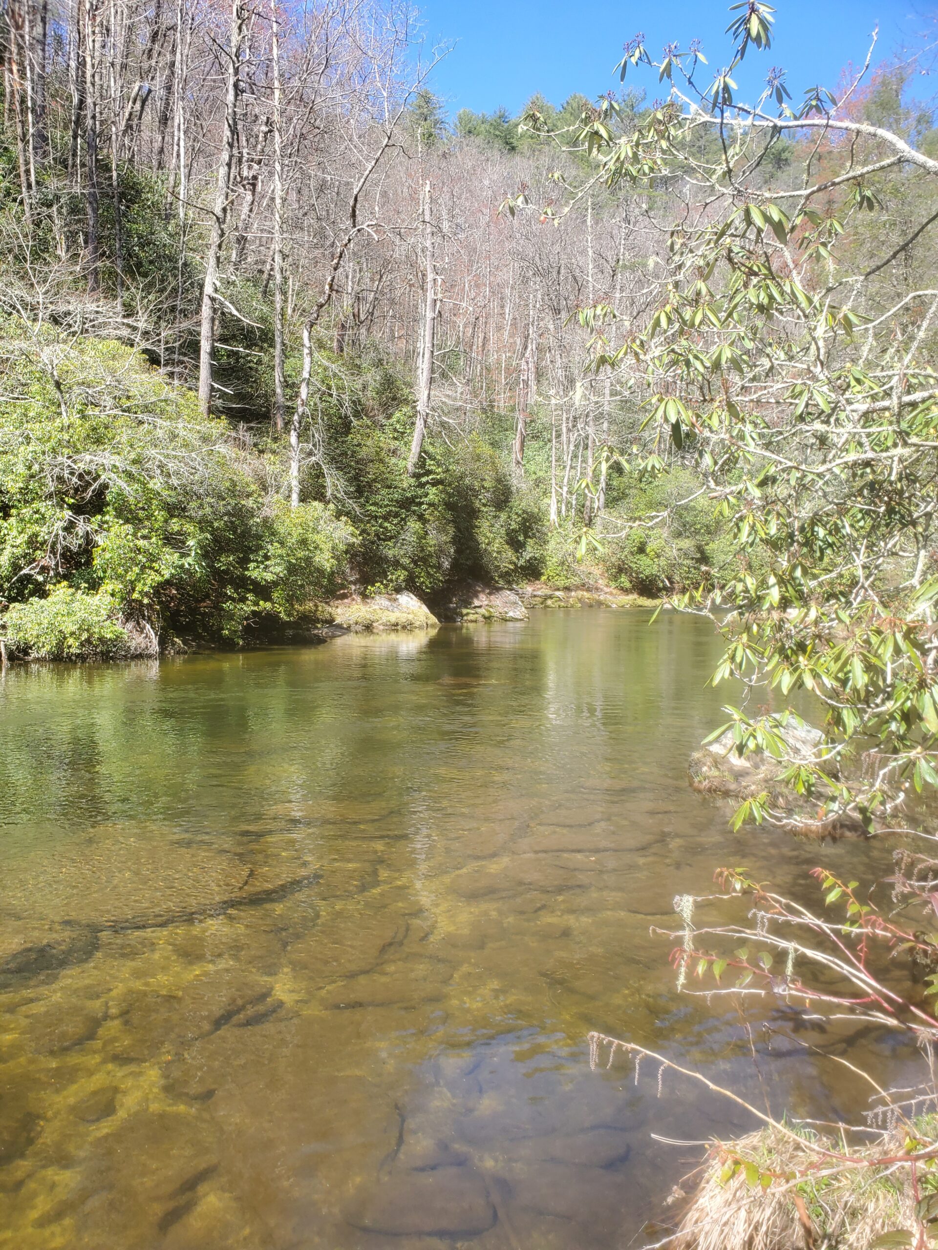 On this chilly late-winter day, we explored the history of the tri-state border region and the 35th parallel. Contested by Cherokees and settlers, and later the states of NC, SC, and GA, the “orphan strip” and Walton County were a brief but fascinating part of WNC history. We made our way to the Chattooga River to search for the boundary-defining survey markers that finally put to rest the tensions and defined this area as part of North Carolina. Of course, we also had to discuss the Chattooga’s connection to a pervasive regional stereotype as the filming location for the film Deliverance.